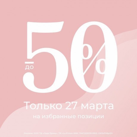 Только 27 февраля в La Prima объявлен «Счастливый день»: мы подготовили лучшие цены и скидки до -50% на позиции-бестселлеры.