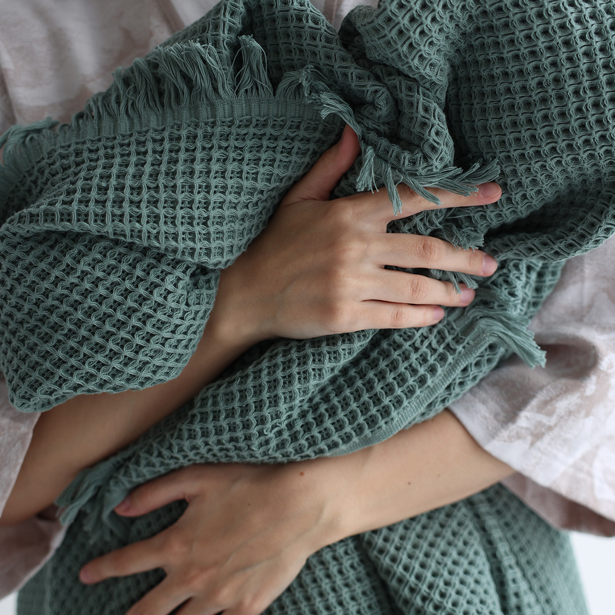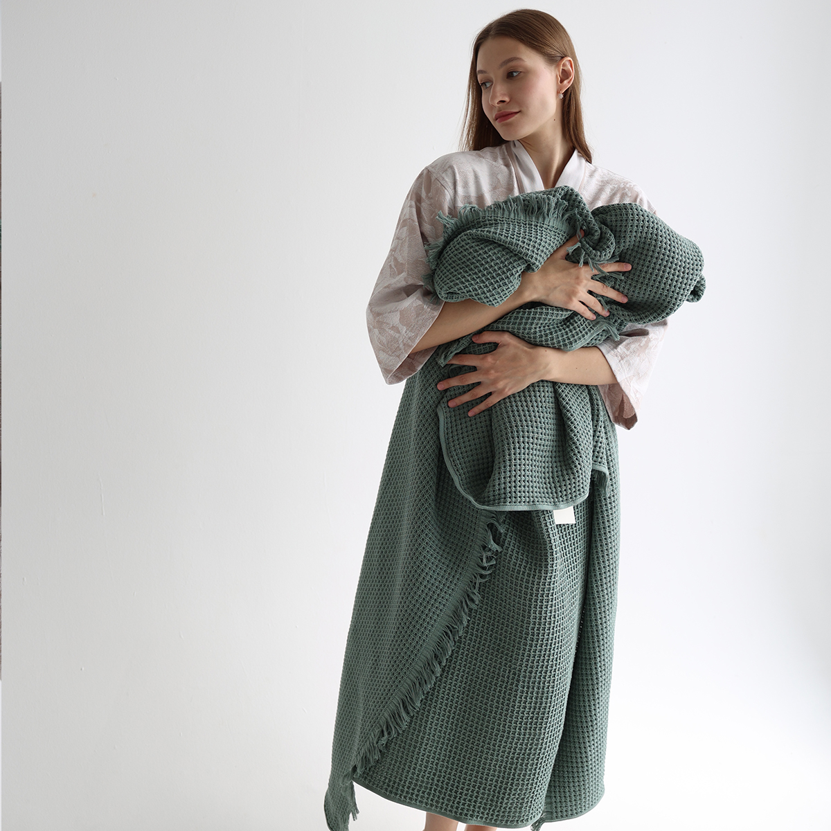 Высококачественная натуральная пряжа делает плед мягким и комфортным на ощупь. Оригинальная объемная фактура добавляет особую изысканность пледу.