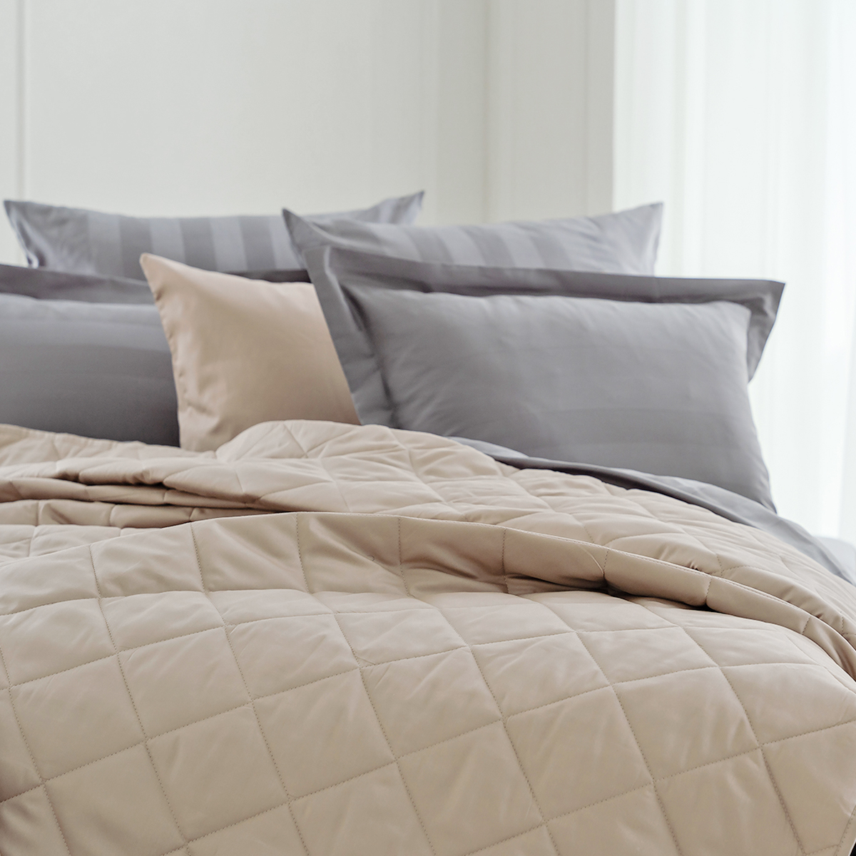 ОСОБЕННОСТЬ модели: хлопковое покрывало на кровать с закругленным уголком, практичной окантовкой по периметру изделия и стильной стежкой в виде ромбов. Верхняя и нижняя часть покрывала выполнены из высококачественного египетского хлопка – безопасного, натурального и комфортного материала.