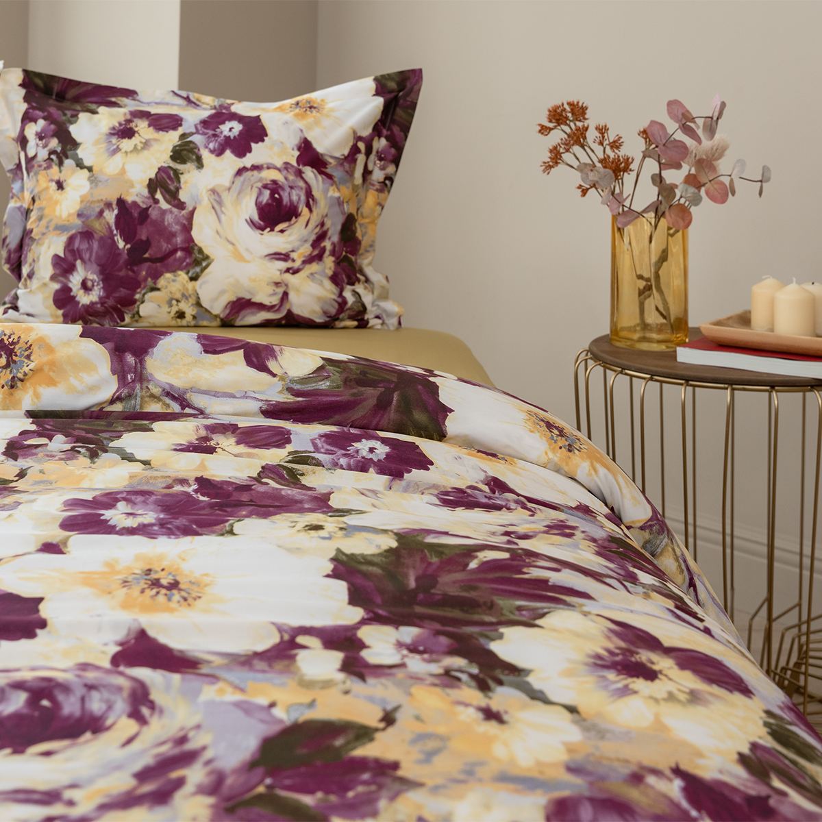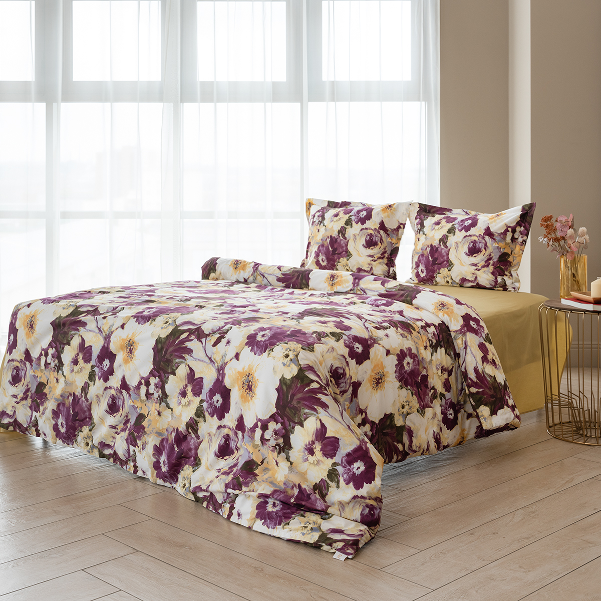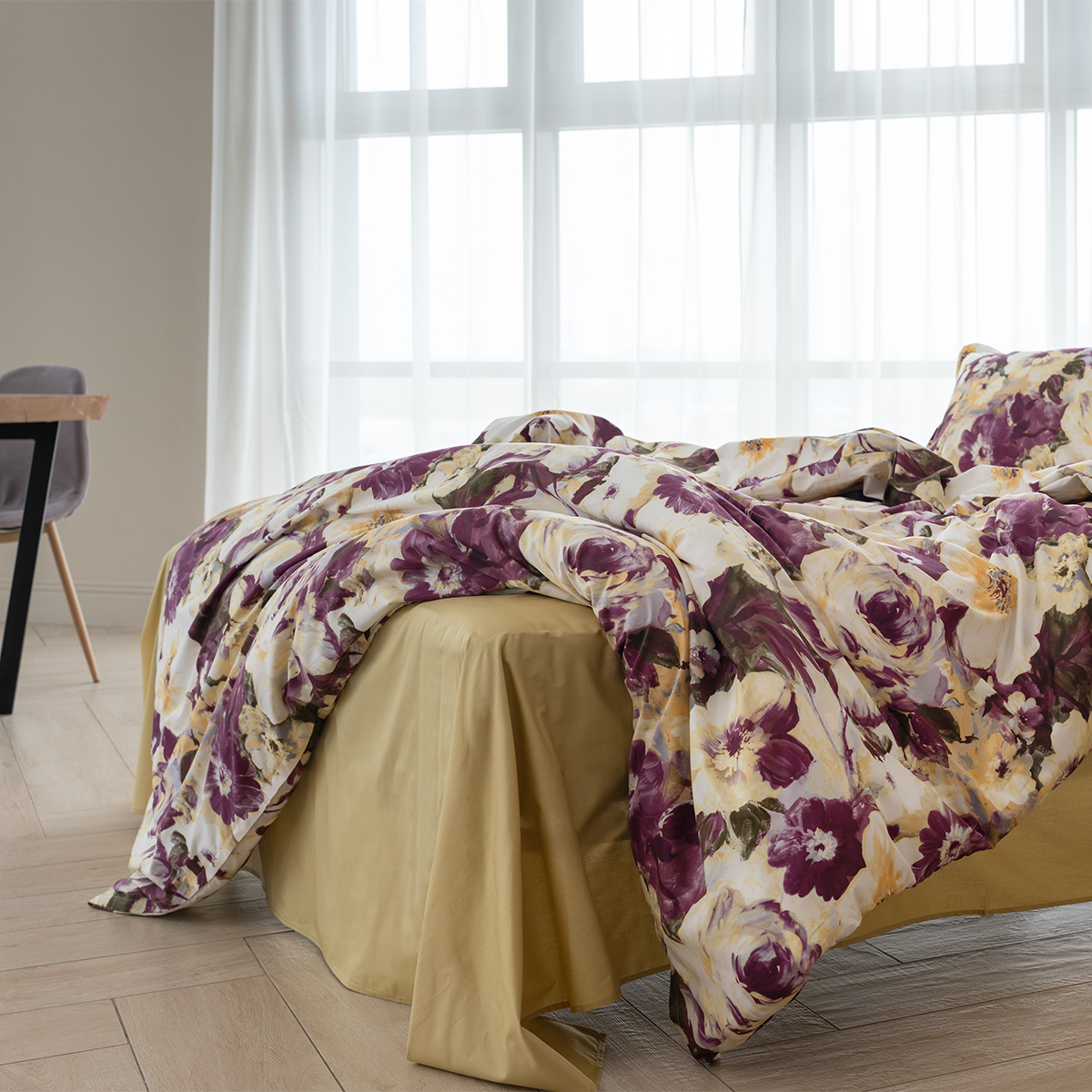 Насыщенный цветочный дизайн, выполненный в акварельной технике, излучает заряд энергии и отличного настроения. Цвет бургундского вина в сочетании с горчичным – яркое послевкусие насыщенного дня. Эксклюзивные печатные принты созданы в собственной дизайн студии La Prima.