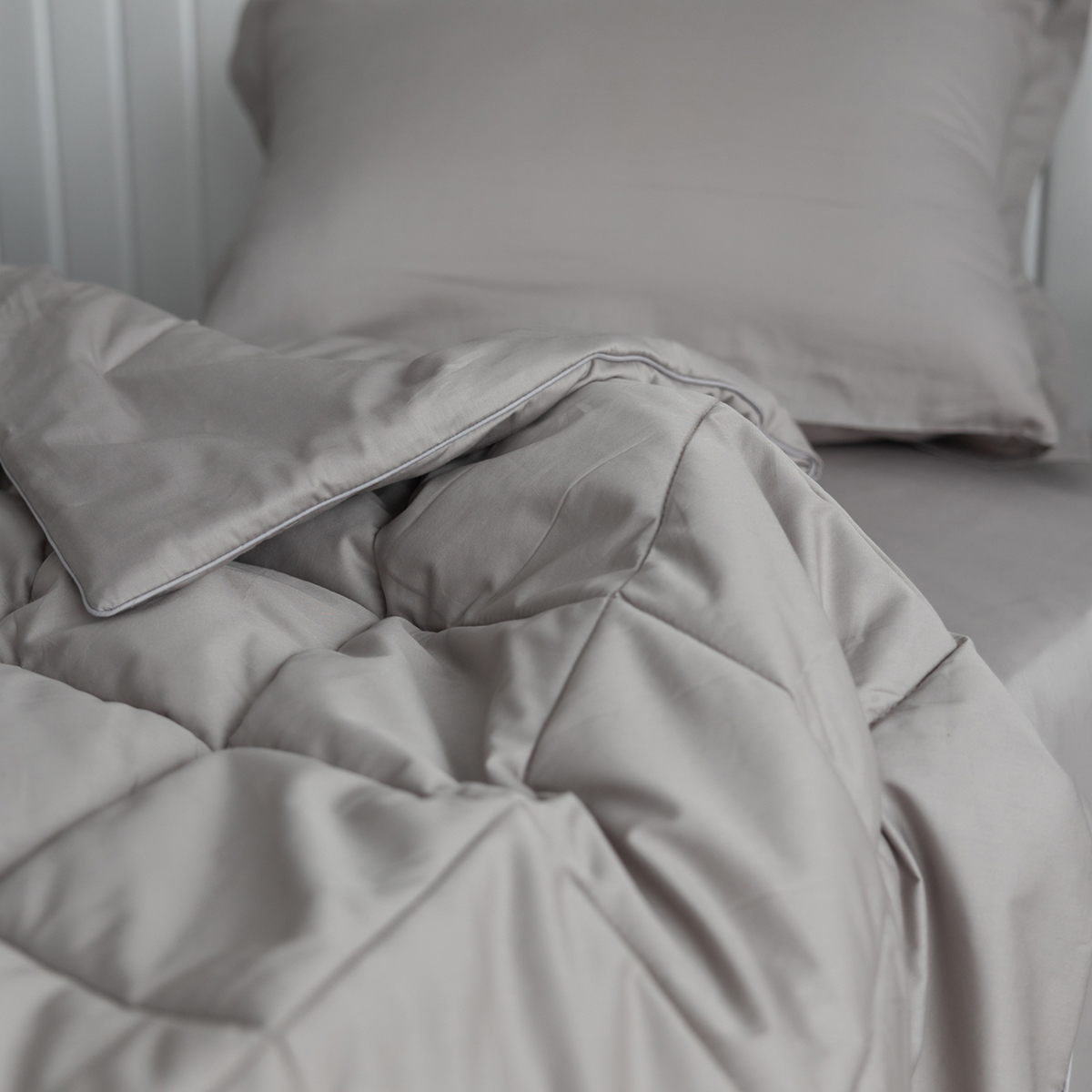 ПОСТЕЛЬНОЕ БЕЛЬЁ САТИН С ОДЕЯЛОМ 2 НАВОЛОЧКИ СЕРЕБРИСТАЯ ДЫМКА