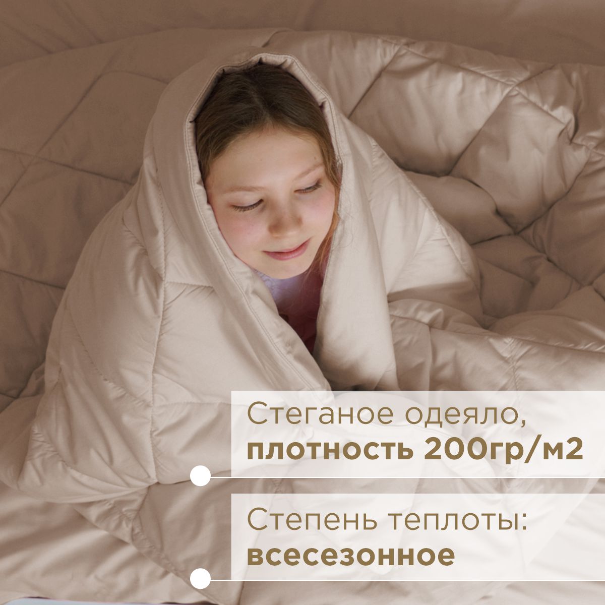 - Стеганое одеяло 140х205см. Одеяло всесезонное, плотность 200гр, что позволяет пользоваться им круглый год. Наполнитель у одеяла: гипоаллергенное 3D микроволокно, не сбивается после стирок.