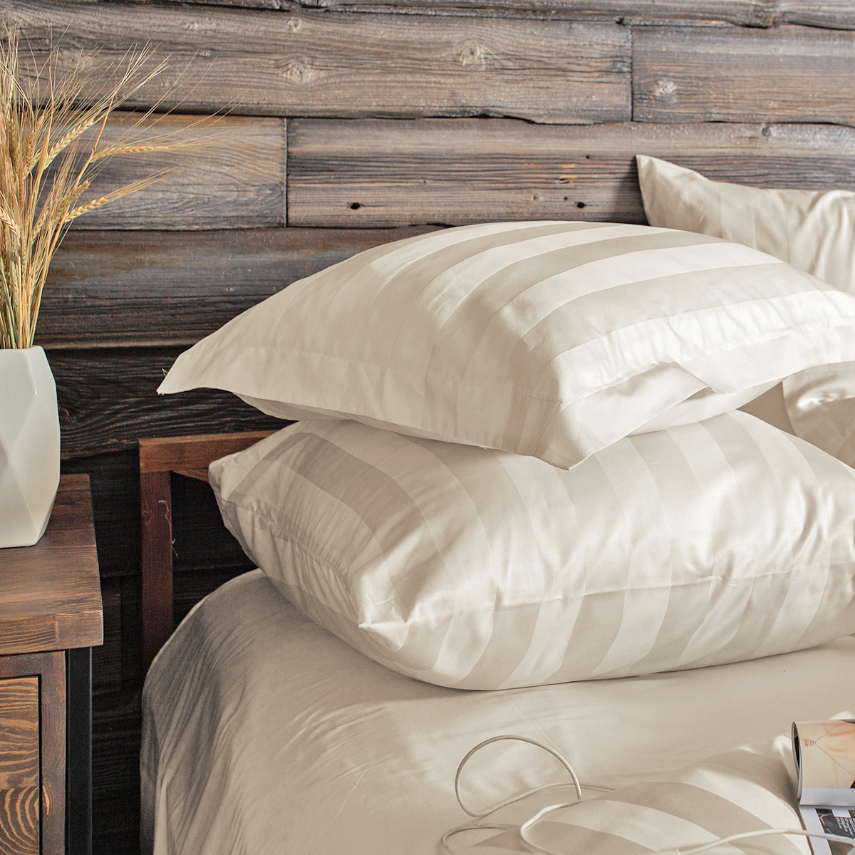Однотонный комплект постельного белья - роскошный 100% египетский хлопок высшего сорта, с жаккардовым рисунком в виде полос 5х5см. Используется более тонкая 60-я нить. За счет специальной скрутки нити, ткань получается очень мягкая и приятная на ощупь. Имеет благородный блеск.