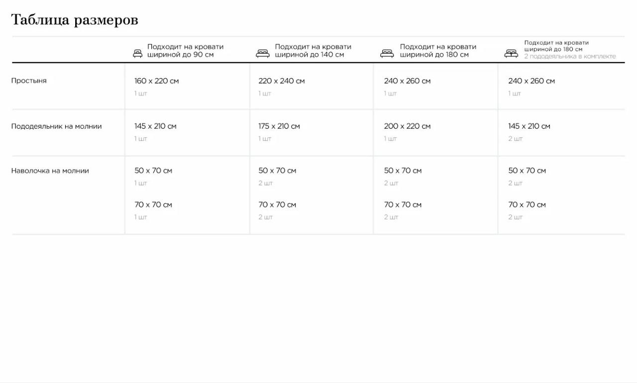 - Увеличенная простыня: Размер 240х260 см (в Евро и Семейных комплектах) для идеальной заправки.
