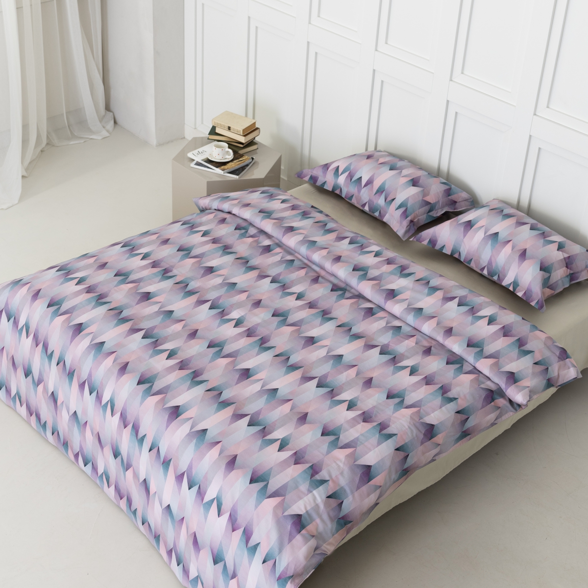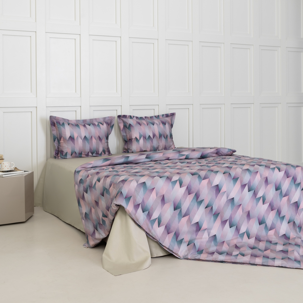 Постельное белье «Саймон» — это воплощение гармонии, где мягкость оттенков встречается с четкостью линий. Градиентные переливы создают игру света, словно в хрустальном лабиринте, добавляя объем и глубину.