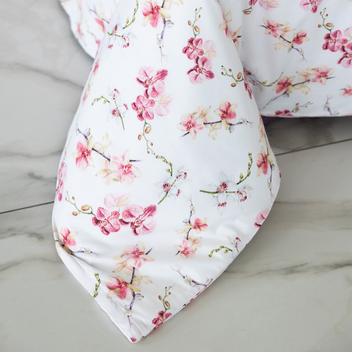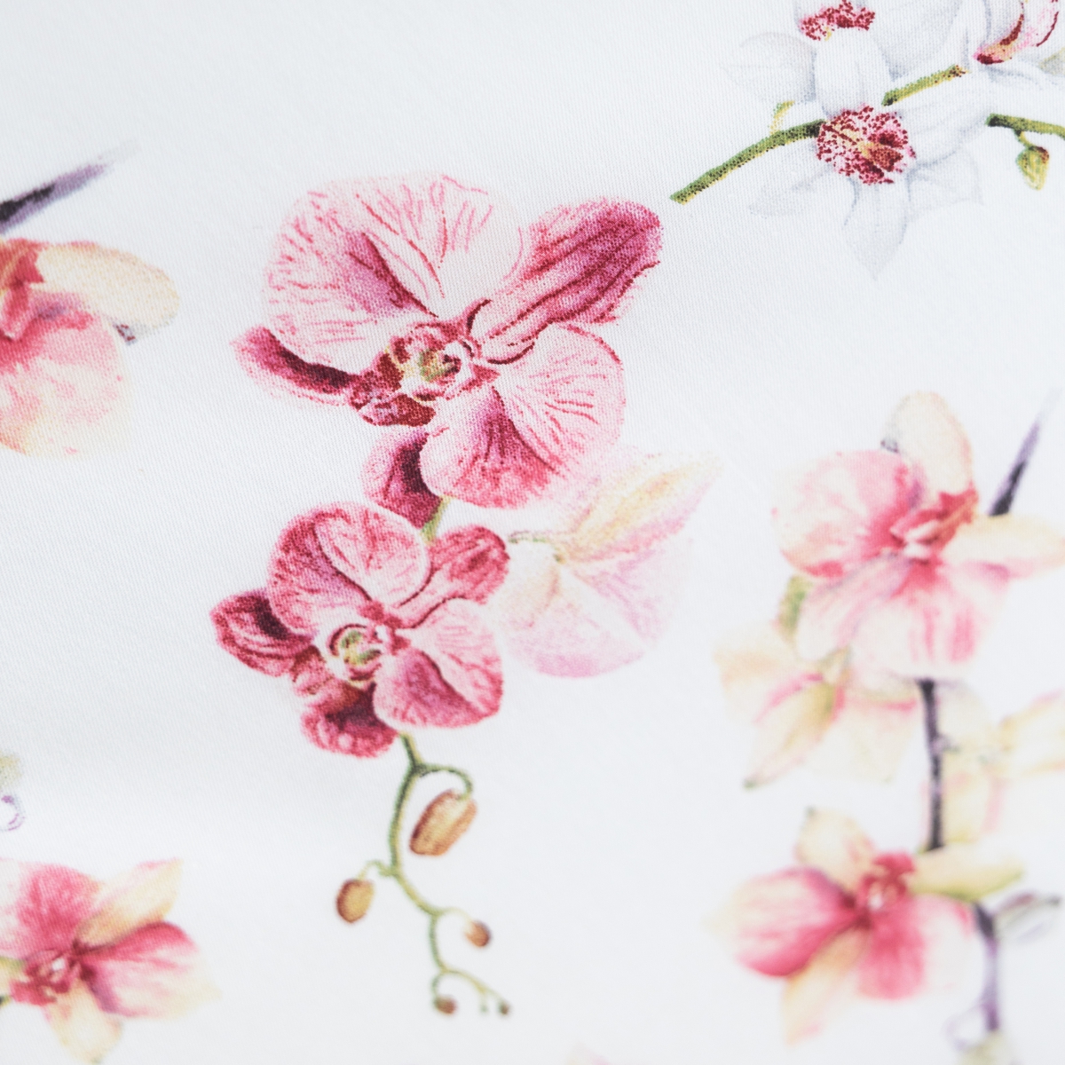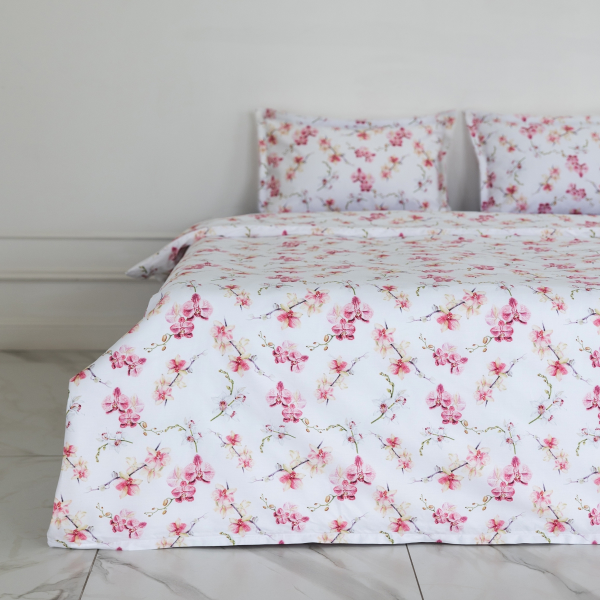 Дизайн «Этюд» - представьте утро, когда за окном — осенняя дымка, а в вашей спальне — по-летнему светло. Идеально белый фон комплекта, как первый искристый иней, отражает свет и наполняет комнату ощущением чистоты и простора. А утонченные орхидеи, застывшие в шелковистой глади сатина, — это напоминание о вашей собственной изысканности и внутренней силе.