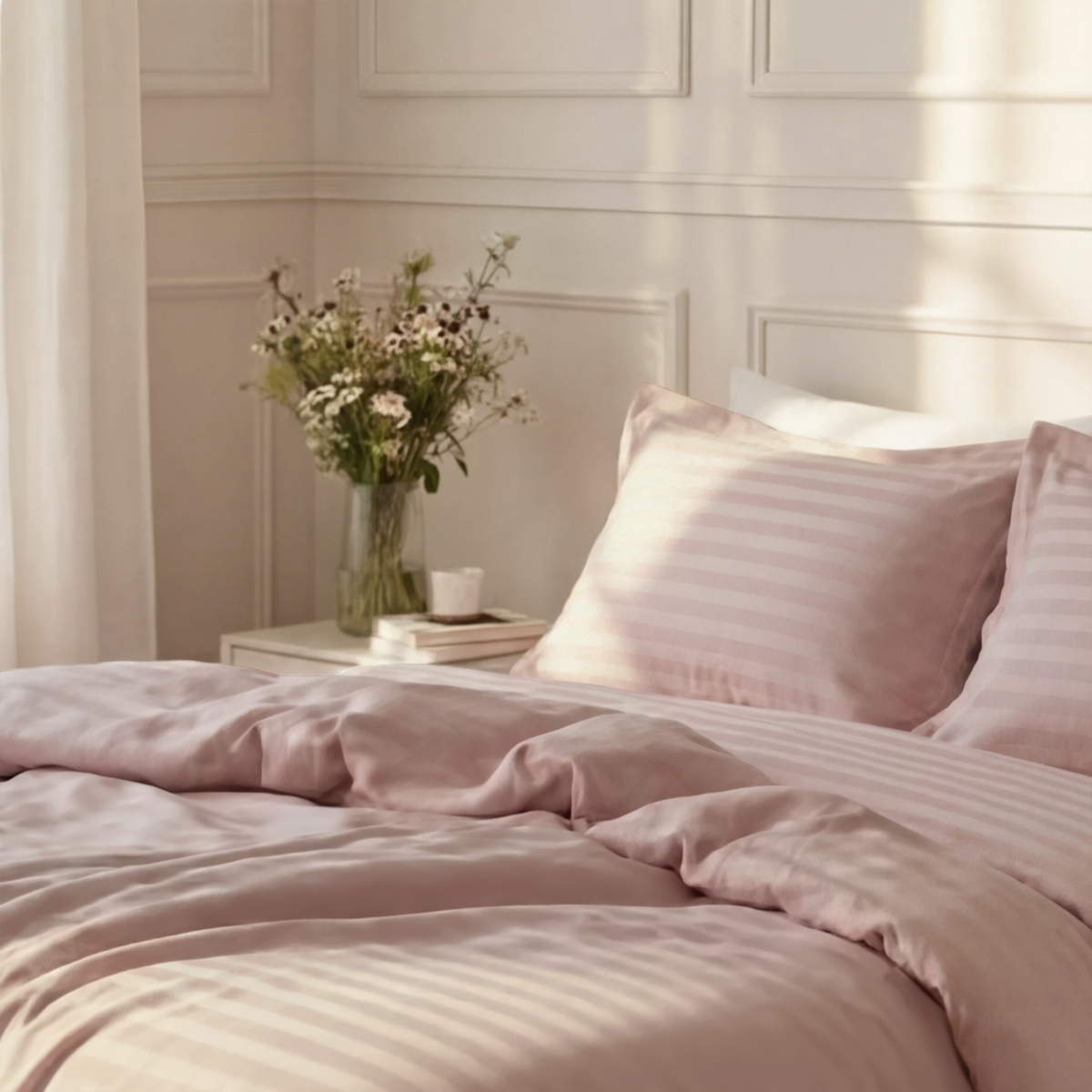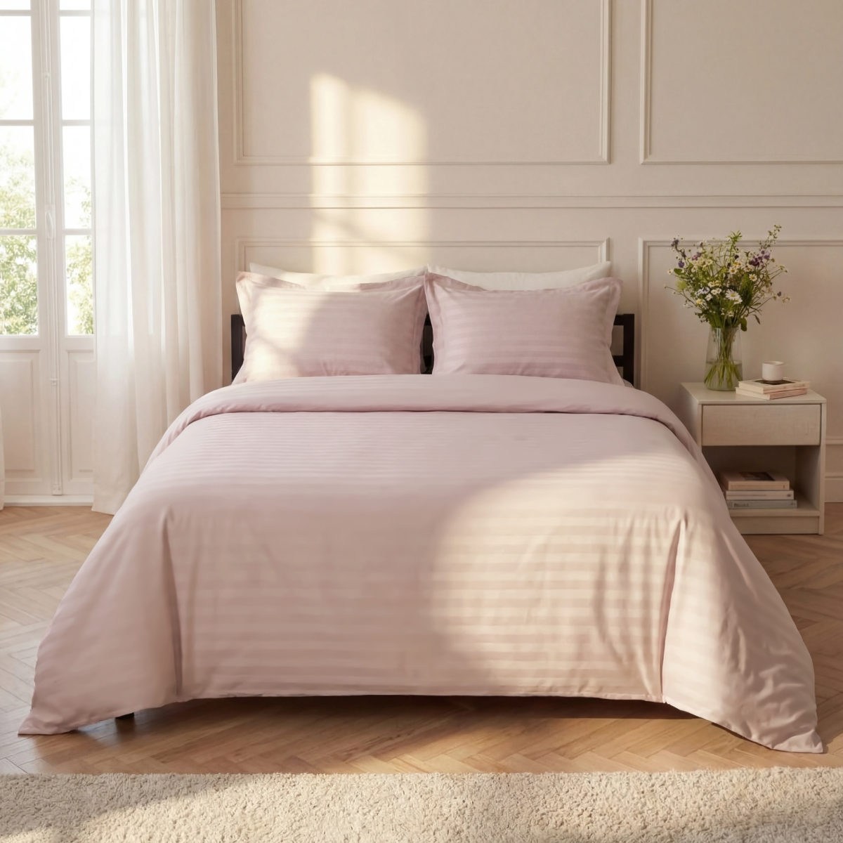 Постельное бельё Cатин | ПОСТЕЛЬНОЕ БЕЛЬЁ СТРАЙП-САТИН ПУДРА