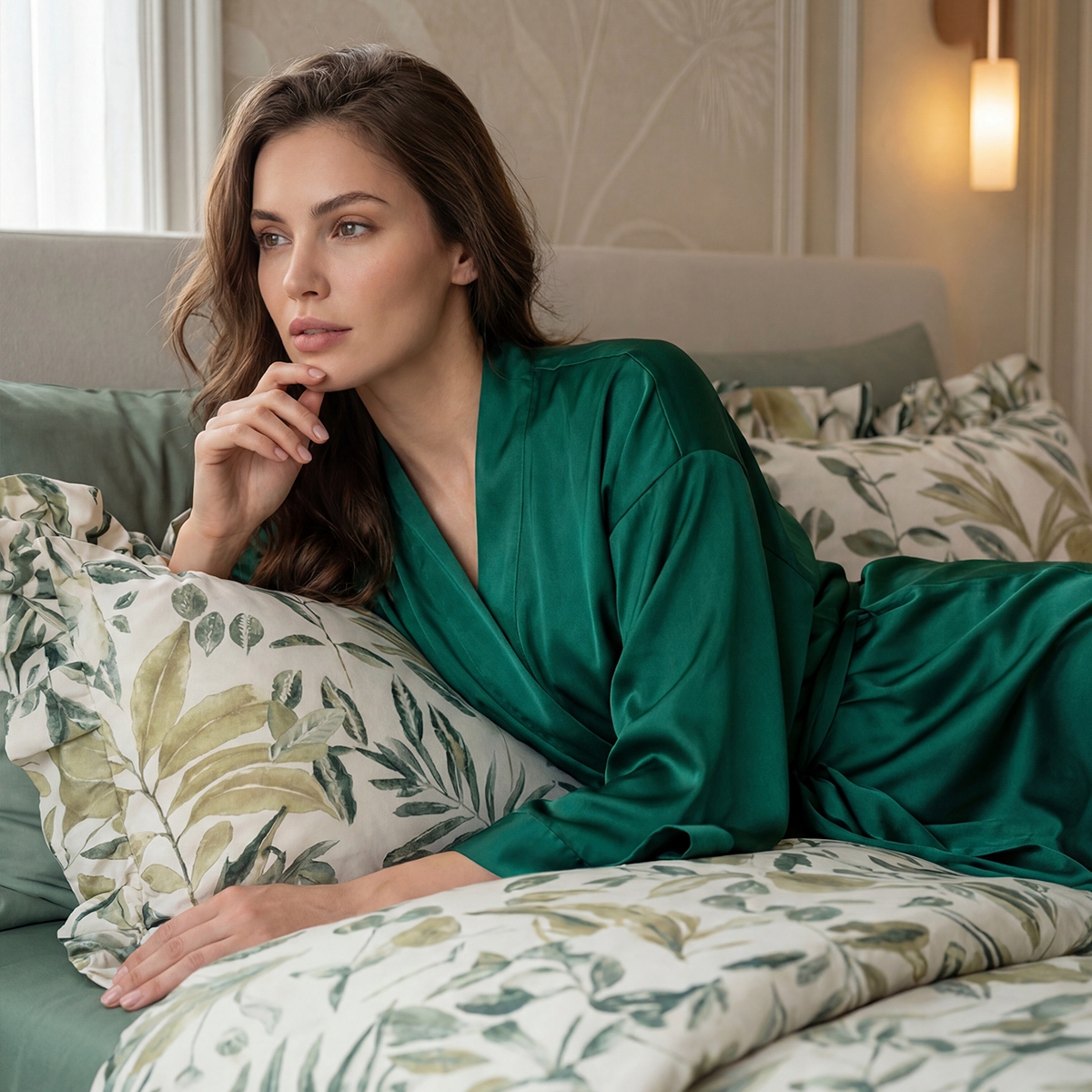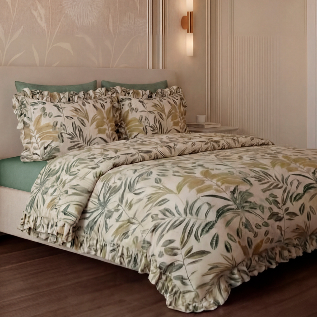 «Мариана»: Стильный растительный принт на молочно-бежевом фоне. Утонченный и современный. Привносит в спальню свежесть, легкость и природную гармонию.