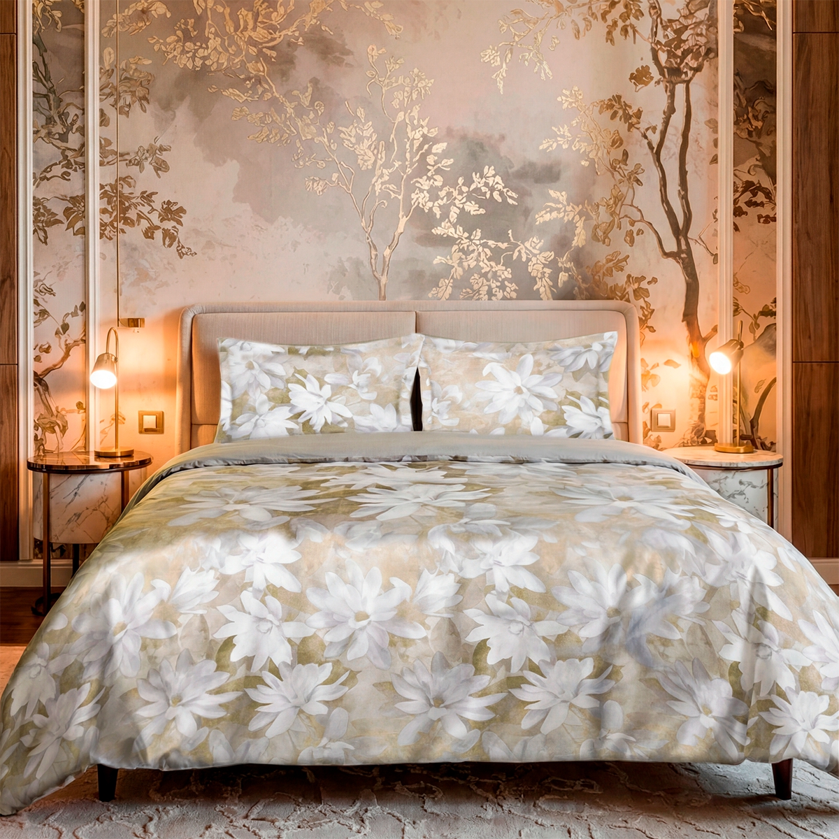 «Мариселла»: Крупный цветочный принт на теплом бежевом фоне. Это сад в стиле старых мастеров, перенесенный на ткань. Дарит ощущение роскоши, стабильности и связи с природой.