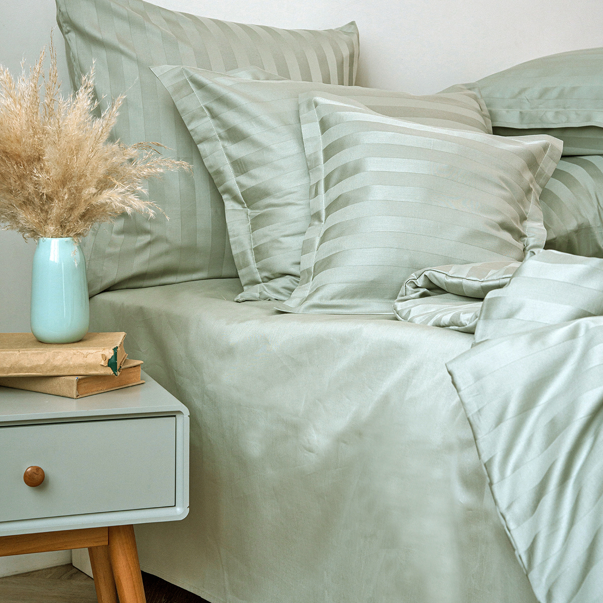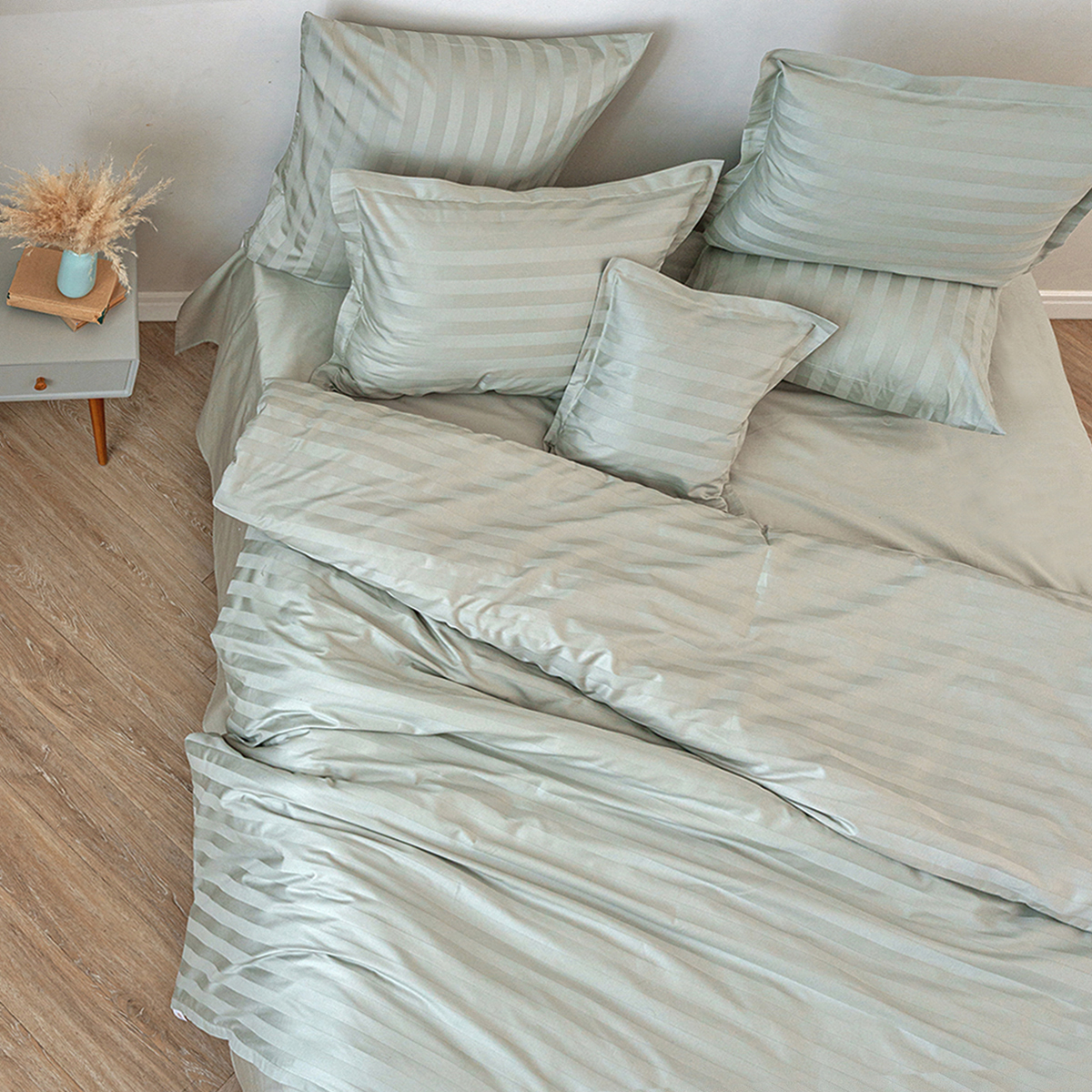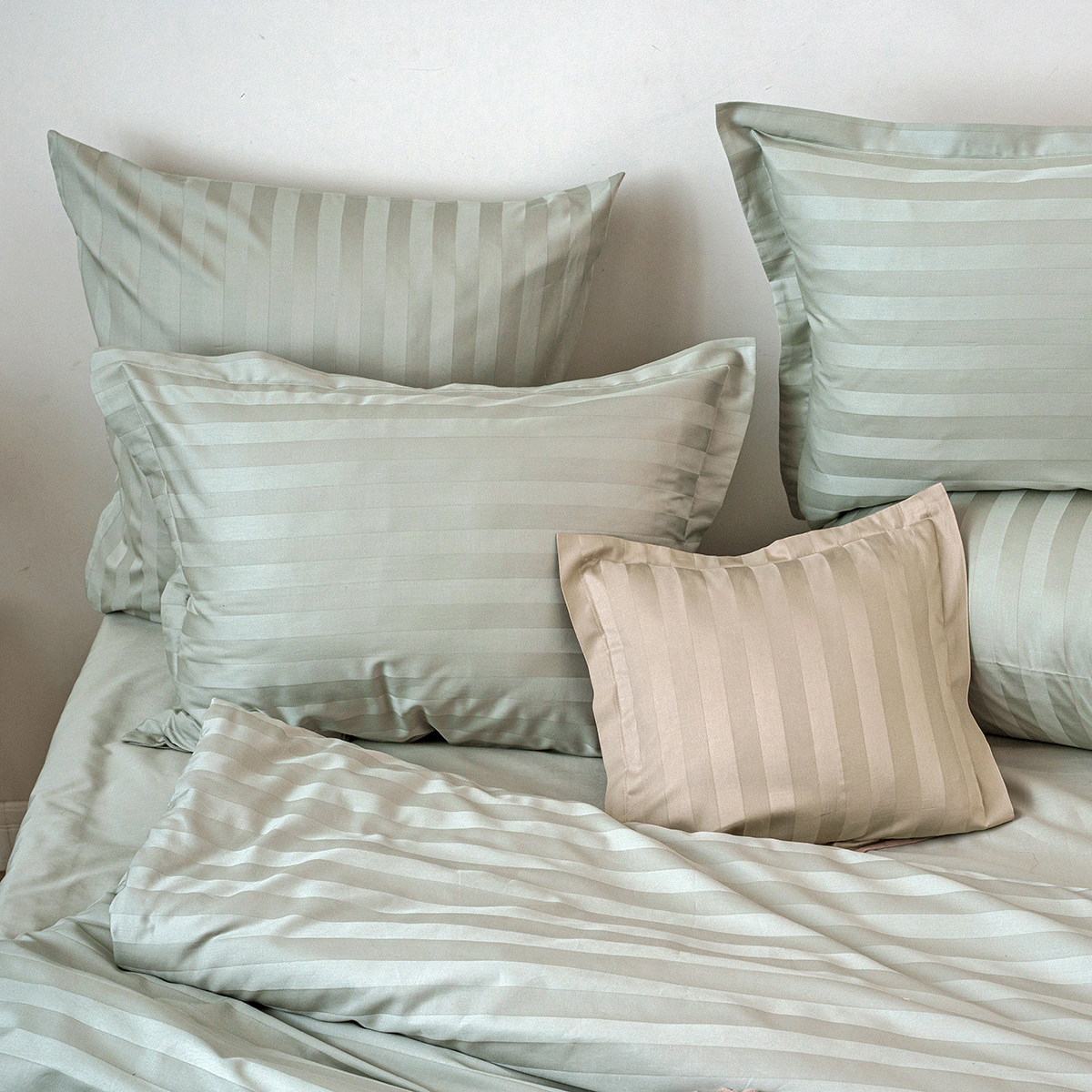 Однотонная стильная наволочка произведена из ткани страйп-сатин 100% хлопок с жаккардовым рисунком в виде полос 3х3 Благодаря специальному плетению - это гладкая, нежная и приятная на ощупь ткань.   Пропускает воздух, поддерживает комфортную температуру тела, когда вы спите.