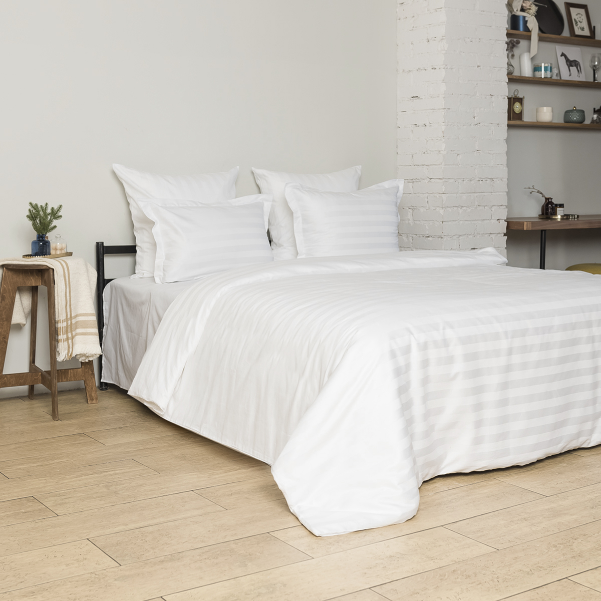 Однотонный стильный пододеяльник произведен из ткани страйп-сатин – 100% хлопок с жаккардовым рисунком в виде полос 3х3.