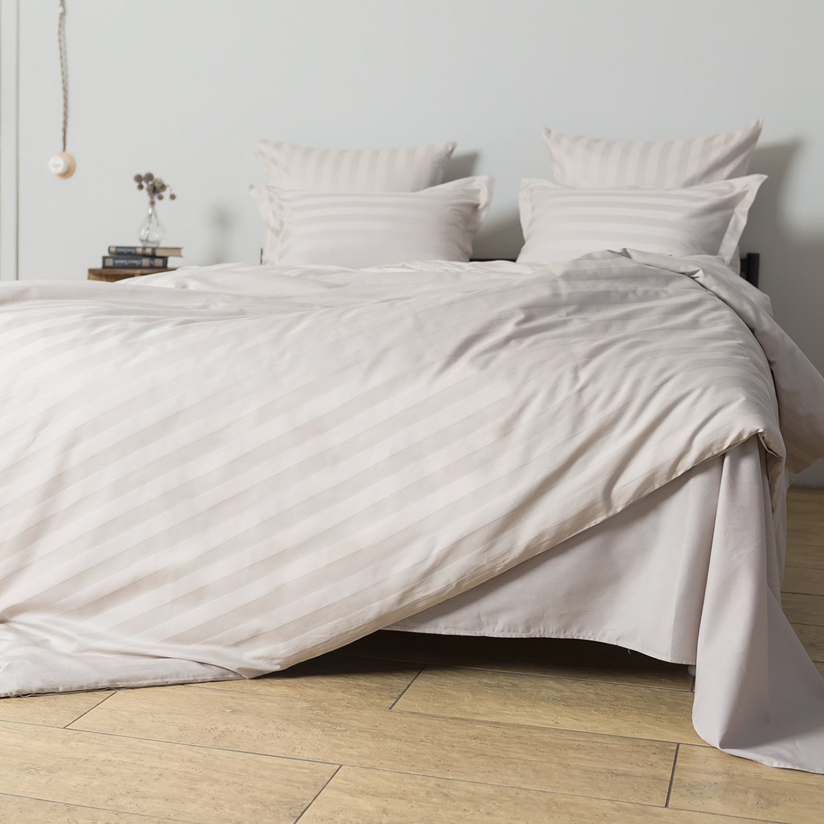 Однотонный стильный пододеяльник произведен из ткани страйп-сатин – 100% хлопок с жаккардовым рисунком в виде полос 3х3