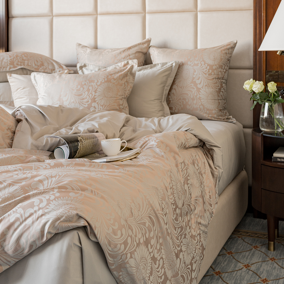 Внешне жаккардовое постельное белье выглядит очень дорого и изысканно. Благодаря тому, что нити в процессе производства перекручиваются, жаккардовая ткань очень плотная, прочная и устойчивая к деформированию, а рисунок и цвет не тускнеют в процессе эксплуатации.