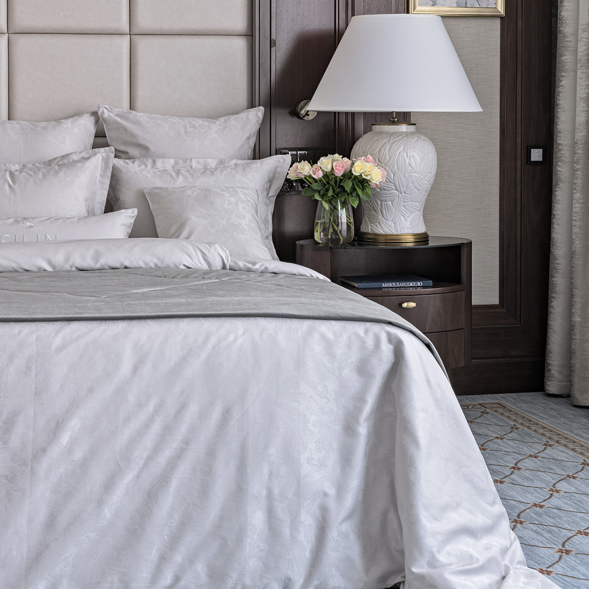 - Лицевая сторона наволочек и пододеяльника выполнена из роскошного жаккарда, оборотная из однотонного хлопка сорта Pima