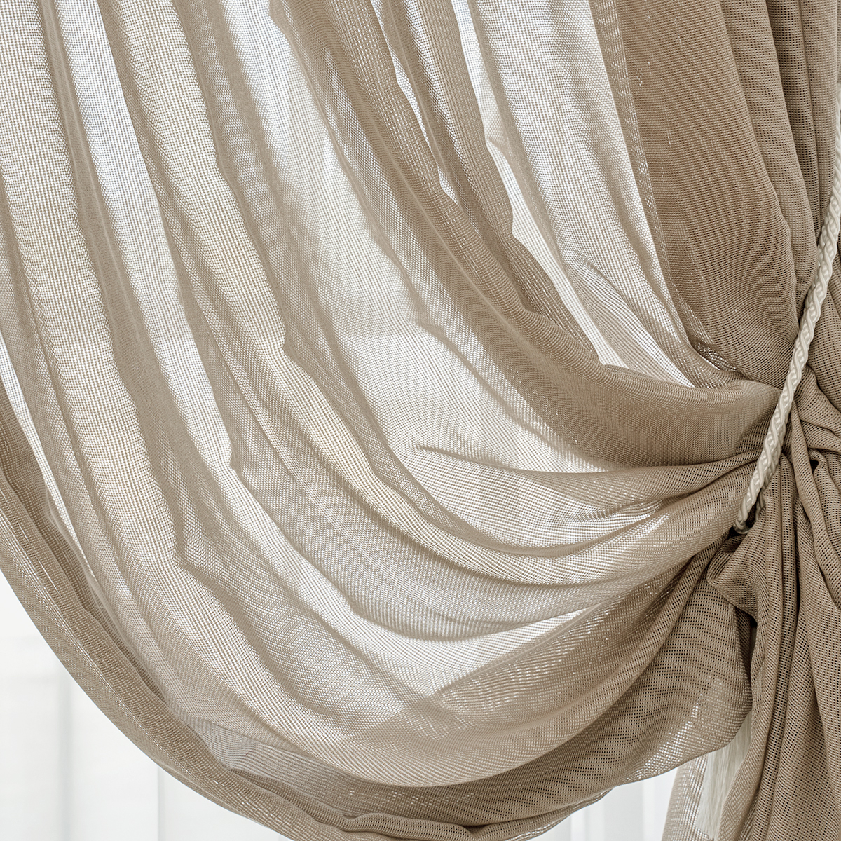 Легкая невесомая и в тоже время особо прочная, износостойкая ткань соткана в виде сетки. Натуральная фактура очень мягкая, приятная на ощупь. Прекрасно драпируется, может использоваться как самостоятельный декор окна.